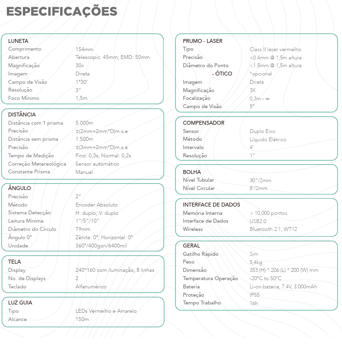 Medição sem prisma (reflexão direta): alcance de até 1,5 km.