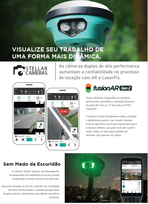 Câmera Stellar: Visualize imagens nítidas mesmo em ambientes com pouca luminosidade, superando as câmeras convencionais e assegurando visibilidade ideal para locação e medições em qualquer condição.