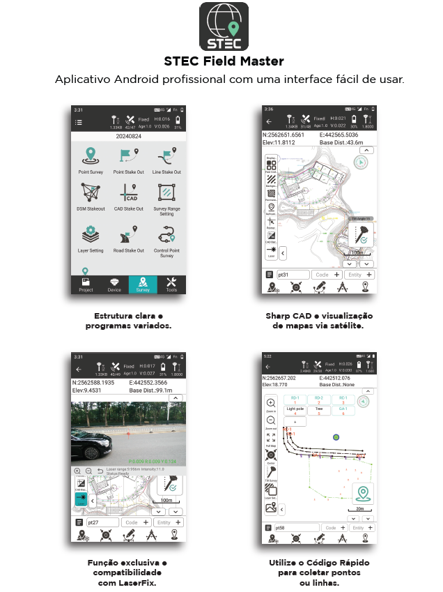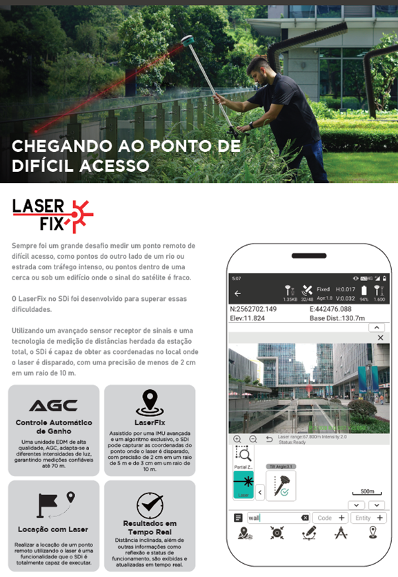 O GNSS RTK STEC SDi leva ao GNSS a precisão do Laser herdado das estações totais, permitindo medir pontos de difícil ou impossível acesso com total confiabilidade.