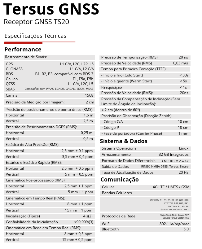 Precisão elevada: 1568 canais RTK de GPS, GLONASS, BeiDou, Galileo, QZSS e SBAS