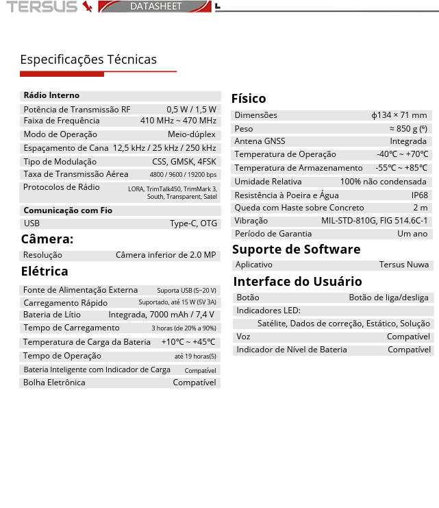 Armazenamento e autonomia robustos: 32 GB internos com bateria de longa duração para trabalho em campo