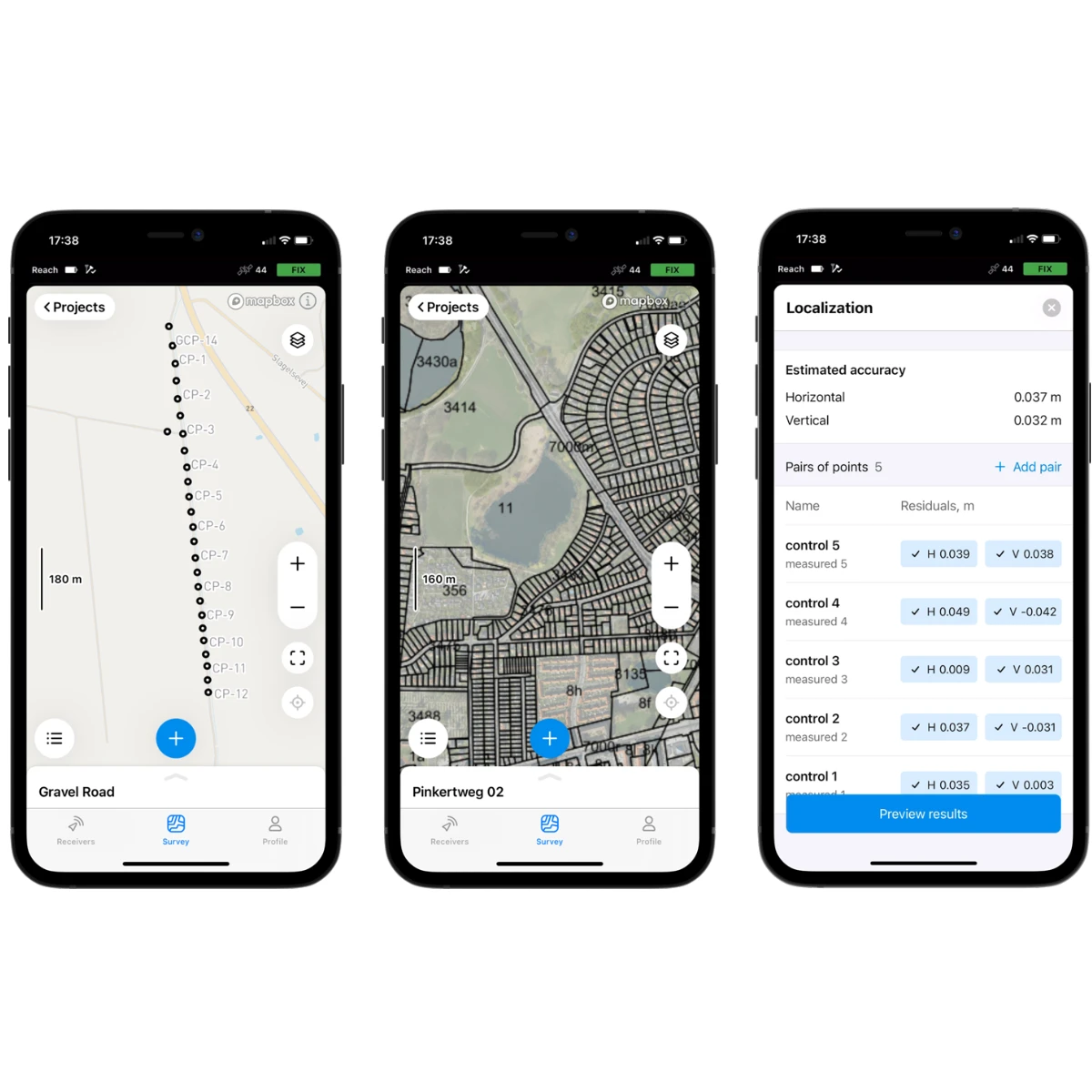 O Emlid Flow gerencia com eficiência todas as tarefas relacionadas ao campo, incluindo configuração do receptor, registro RINEX, coleta de dados e implantação.